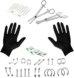 teng hong hui 40 Stück/Set Body Piercing Werkzeug-Set Navel Nasen Ohrläppchen Bauch Nippel Nasen Ohrläppchen Bauch Nippel-Piercing Bolzen-Handschuhe Nadeln Kit