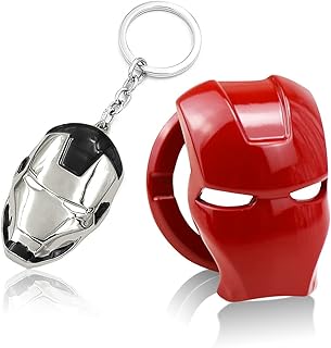 Auto-Startknopf-Abdeckung, Motor-Start-Stopp-Schalter-Abdeckung, Zündungs-Abdeckung, Ring, Legierung, Iron Man, kratzfest, schützende Dekoration und Schlüsselanhänger – 2 Stück (rot)