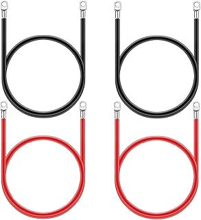 Xiuyer 4pcs Auto Batterie Kabel Kupferdraht mit Marine Batterie Ösen 16 mm² Schwarz Rot Kupferkabel Kabel Draht für Auto Inverter RV