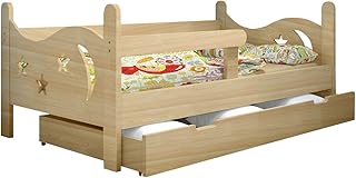 Happy Babies - Doppelseitiges KINDERBETT MIT SCHUBLADE Modernes Design mit sicheren Kanten und Absturzsicherung Schaumstoffmatratze 7 cm Buche (160/80, Polizei)