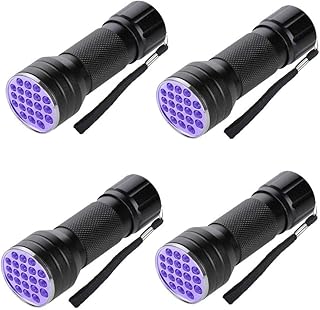 UV-Taschenlampe, Optimal Shop Ultravilot Urinlicht 21 LED UV Schwarzlicht Taschenlampe Detektor für Hunde, Haustierflecken-Detektor, Hundeurin-Entferner, Bettwanzen-Detektor, Schwarz, 4 Stück
