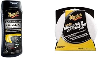 Meguiar's G15812EU Ultimate Black Plastic Restorer Kunststoffpflege, 355ml & X3080EU Even Coat Applicator Pad, Mikrofaser-Auftragsschwamm, 2-er Pack