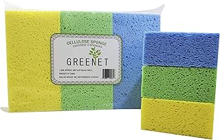 Greenet Autoschwamm groß Zellstoffschwamm für Autowäsche, Küche und Reinigung, 3 Stück Auto Reinigungsschwamm gelb umweltfreundlich biologisch abbaubar (gelb, blau und grün)