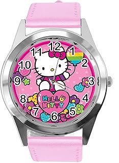 Runde Armbanduhr aus echtem Leder für Kitty-Fans in Rosa
