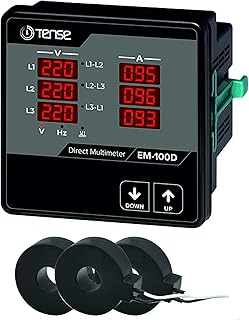 Tense Elektronik EM-100DIN Einbaumessgerät Multimeter zur Messung von Strom (1A-100A), Spannung und Frequenz in 3-Phasigen Netzwerken - DIN-Schiene Hutschiene digital, Grau, Schwarz, Rot Marke: Tense Elektronik 103 Sternebewertungen 8598€ KOSTENFREIE Retouren AC, three-phase, high-performance Description Multimeters are designed to measure electrical values such as voltage, current, frequency, apparent power, and minimum, average, maximum and demand values of the load or loads in the system to which they are connected.