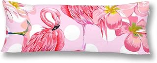 CiCiDi Seitenschläferkissen Kissen-Bezug 40x145 cm Rosa Flamingos Blumen blüht geometrischen Tupfen Atmungsaktives Kissenhüllen mit Reißverschluss Baumwollen und Polyester