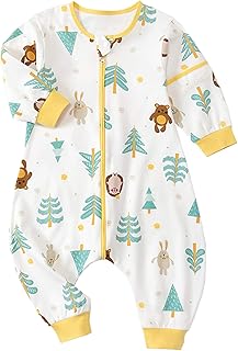 Chilsuessy Sommerschlafsack Baby Schlafsack mit Füßen 1 Tog Kleine Kinder Schlafanzug mit abnehmbar Ärmel für Sommer und Frühling 100% Baumwolle, Wald, XL/Baby Höhe 95-105cm