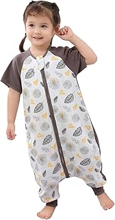 Chilsuessy Baby Sommer Schlafsack mit Füßen Mädchen und Junge Schlafstrampler Baby Sommerschlafsack Kinder Sommer Schlafanzug Kurzarm, Braun Blätter, 100/Baby Höhe 100-110cm