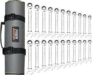 AIRAJ Ratschenschlüssel-Set 22-Tlg,Professionelles metrisches Standard-Kit. Chrom-Vanadium-Stah | mit Maulschlüssel Aufbewahrungstasche,Hochwertiger Ratschenschlüssel set