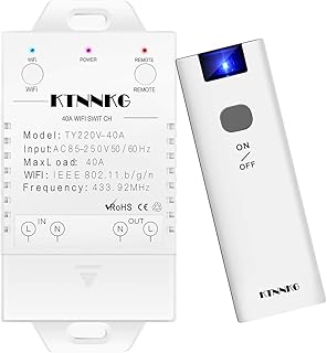 KTNNKG 40A WiFi-Schalter Für Gartenlicht, Poolpumpe und Staubsammler, Unterstützt Fernbedienung, Kompatibel Mit Tuya APP, Neutralleiter Erforderlich, 110V 220V AC